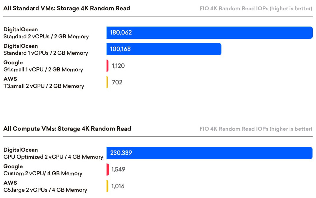 3. DigitalOcean’s exceptional random read performance and best in class random write scores.